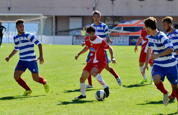 Insiste la formazione di Rastelli, in costante proiezione offensiva, e al 7’ i biancorossi prendono d’assalto l’area ospite, con cross di Fink e controcross di Branca, sugli sviluppi del quale il tiro di Marras viene murato.